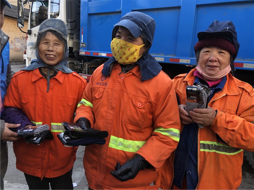 2021年1月2日,天氣寒冷,江山市一如既往志愿服務中心志愿者給浙江省江山市環(huán)衛(wèi)工人送溫暖,給他們每人發(fā)兩雙羊絨加厚保暖襪!