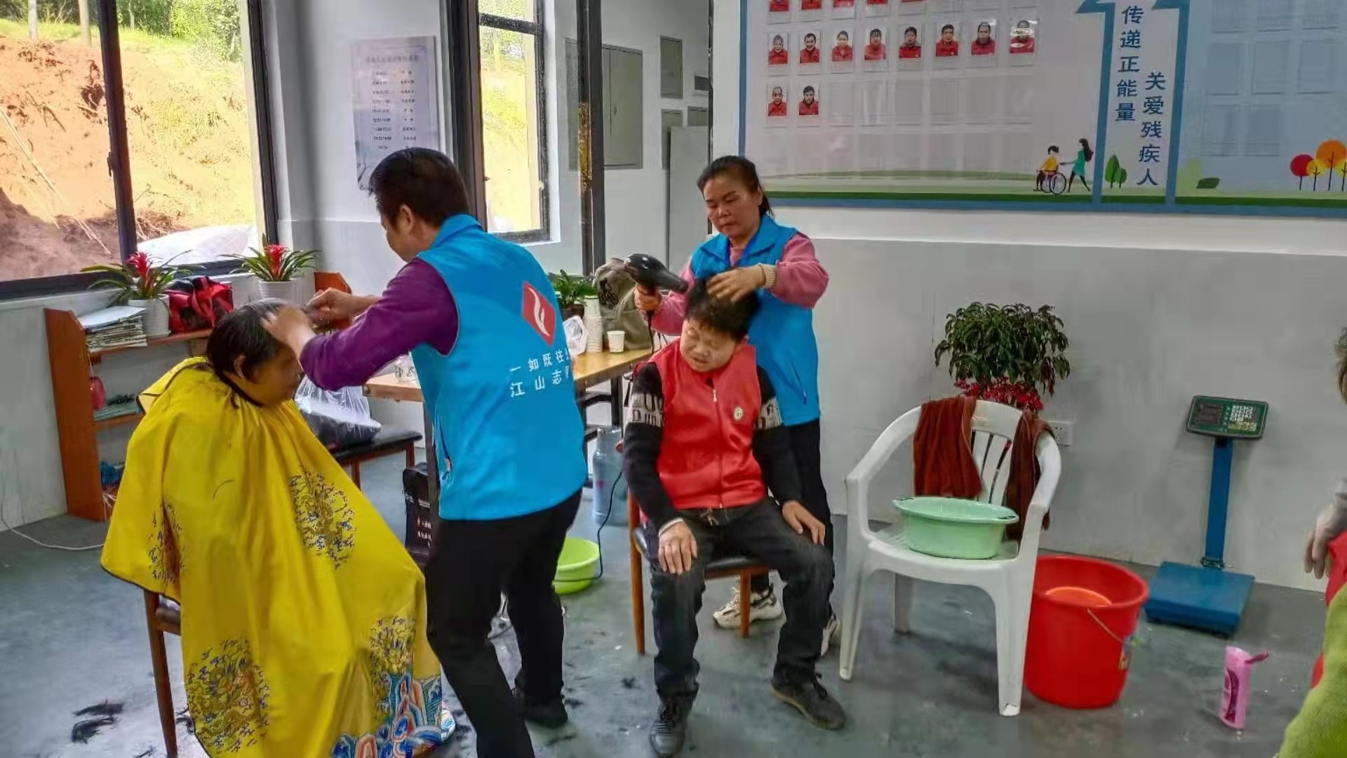 2021年4月9日,江山市一如既往志愿服務(wù)中心志愿者走進(jìn)江山市碗窯鄉(xiāng)殘疾人之家,給22名殘疾朋友免費(fèi)理發(fā);剪指甲,發(fā)放22把雨傘。